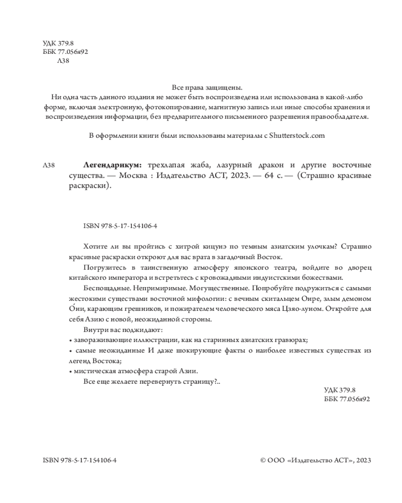 💳 Оплатить за товар можно при получении 🇰🇿 Есть бесплатная доставка по Казахстану от 1 дня 🎁 Копите бонусы с каждой покупки Серия: Страшно красивые раскраски Хотите ли вы пройтись с хитрой кицунэ по темным азиатским улочкам? Страшно красивые раскраски откроют для вас врата в загадочный Восток. |