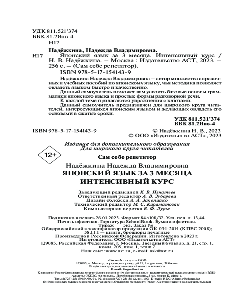 Японский язык за 3 месяца. Интенсивный курсНадежда Владимировна Надежкина +91