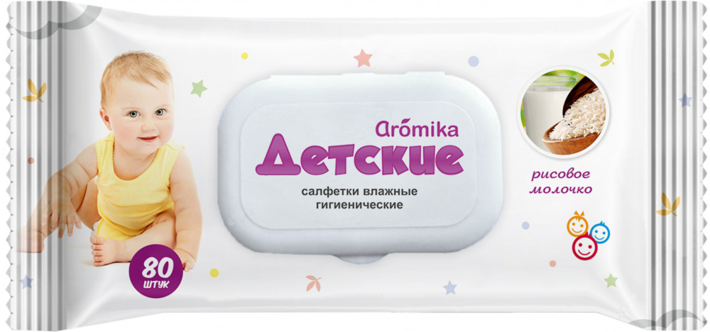 Аромика Салфетки влажные детские с клапаном «Рисовое молочко»