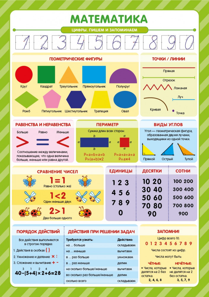 💳 Оплатить за товар можно при получении 🇰🇿 Есть бесплатная доставка по Казахстану от 1 дня 🎁 Копите бонусы с каждой покупки Набор обучающих плакатов для малышей «Знания для школьников» — это удобный и красочный способ систематизировать знания, выучить самое важное, оформить рабочее место первоклассника. Это десять самых актуальных тем, которые пригодятся вашему малышу в 1-2 классе начальной школы и для гармоничного всестороннего развития: шпаргалки для обучения чтению, важнейшие правила русского языка, арифметика, английский язык. Занимайтесь вместе с плакатами «Знания для школьников» — учитесь в школе с интересом и лёгкостью! |