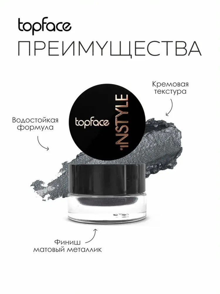 Благодаря интенсивной пигментации и кремовой текстуре, вы можете создать макияж в одно касание с помощью кремовых теней для век TopFace Instyle. Водостойкая формула с матовым металлическим финишем сохраняется в течение всего дня.