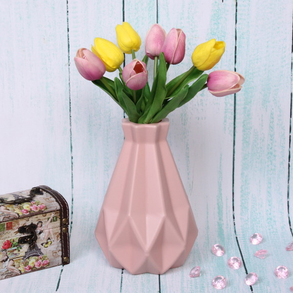 Декоративная интерьерная ваза в современном стиле из пластика имеет необычную форму и изысканное покрытие. Красивая настольная ваза, благодаря оригинальной форме и насыщенному цвету будет роскошным предметом интерьера вашего дома, квартиры или офиса. Она идеально подойдет для сухоцветов и для живых цветов. Или может применяться как самостоятельный элемент декора. Дополните комплект изысканными сухоцветами, искусственными цветами, лавандой и ваш подарок себе или близким будет радовать глаз на протяжении долгого времени!