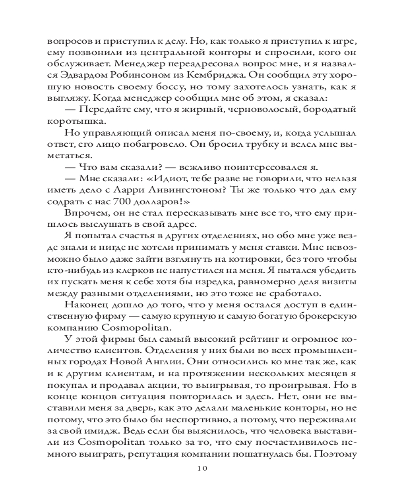 💳 Оплатить за товар можно при получении 🇰🇿 Есть бесплатная доставка по Казахстану 🎁 Копите бонусы с каждой покупки Серия: Бизнес Это художественная биография, пожалуй, одного из самых величайших в истории финансовых гениев, Джесси Ливермора, рассказывающая всю правду о психологии рынков, инвестиций и биржевой игры. В своей книге Эдвин Лефевр описывает большое количество трейдовых стратегий, приемов и уловок, которые использовал легендарный мастер, делится бесценным опытом, полученным его героем, выдает множество интересных фактов из мира финансов и жизни знаменитого маклера. На этой классической книге, впервые изданной в 1923 году, выросло уже не одно поколение блестящих финансистов. Благодаря своему гениальному содержанию сегодня «Воспоминания биржевого спекулянта», как и век назад, остаются актуальным руководством для трейдеров. |