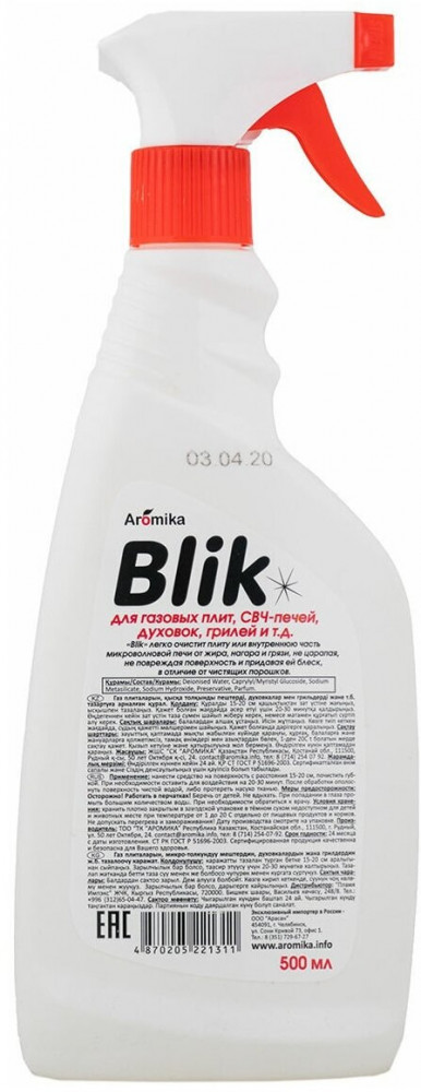 💳 Оплатить за товар можно при получении 🇰🇿 Есть бесплатная доставка по Казахстану от 1 дня 🎁 Копите бонусы с каждой покупки Серия: Blik «Aromika Blik» с антинагаром это эффективное средство для чистки плит, микроволновок, духовок, духовых шкафов, грилей, шампуров. «Blik» легко очистит плиту и внутреннюю часть микроволновой печи от жира, нагара и грязи не царапая, не повреждая поверхность и придавая ей блеск, в отличие от чистящих порошков. |
