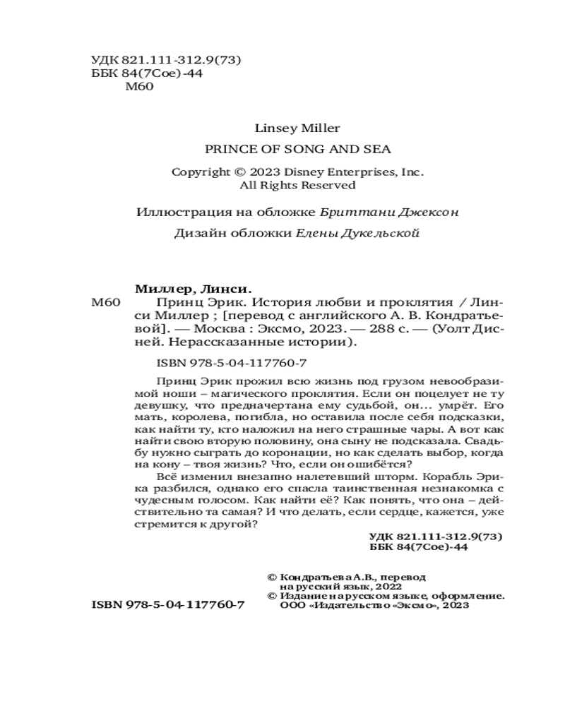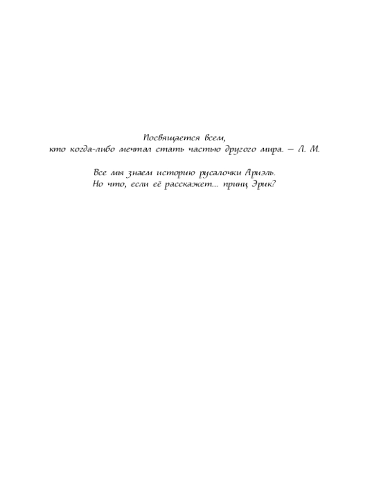 Новый взгляд на знакомую историю, новые тайны и проклятия, магия, любовь, приключения и ещё больше русалок! А ещё та часть отношений русалочки и принца, что не была показана в детском мультфильме. Всё это ждёт вас в новой книге «Принц Эрик». История любви и проклятия. Добро пожаловать назад в волшебный мир Disney, который стал гораздо глубже и опаснее! |