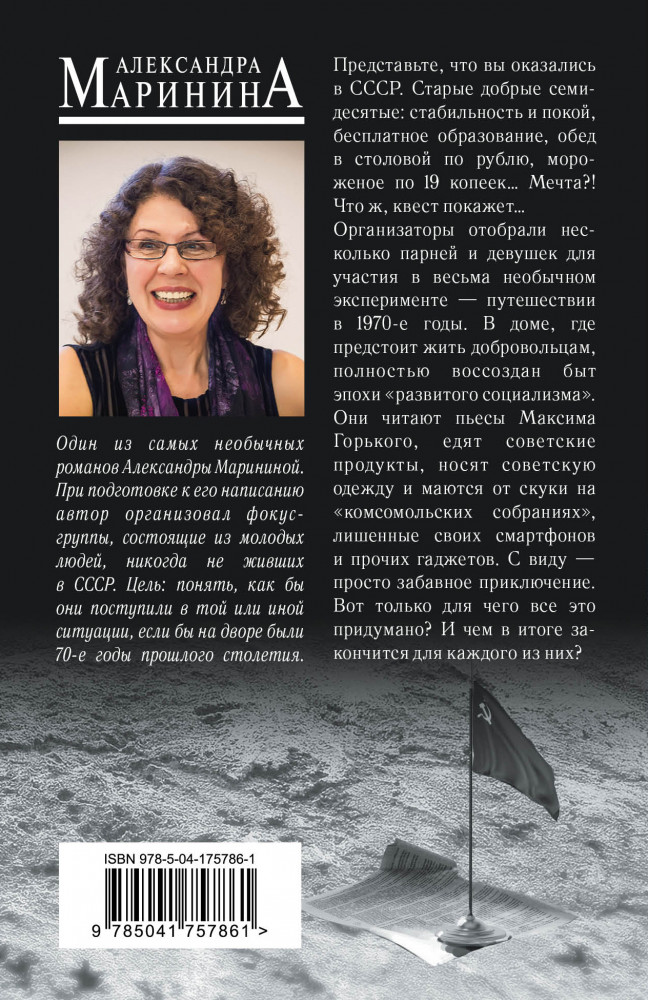 Серия: А.Маринина. Больше чем детектив. Новое оформление (обложка) «Горький квест» — это невероятный эксперимент по погружению современных молодых людей в советскую эпоху 70-х годов. Для написания этого произведения Александра Маринина организовала фокус-группы современной молодежи и их реальные реакции описала в книге. Вы узнаете, как повело бы себя поколение Z в реалиях эпохи «развитого социализма». |