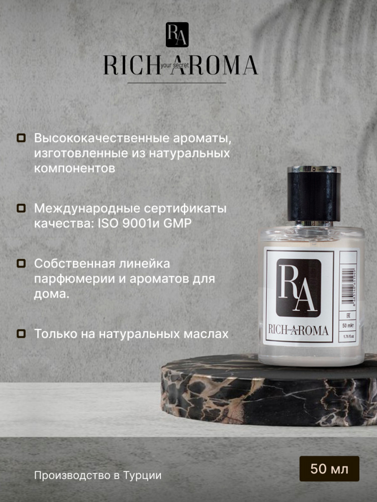 Парфюмерия мировых брендов, ароматы на основе натуральных компонентов от бренда Rich Aroma. |