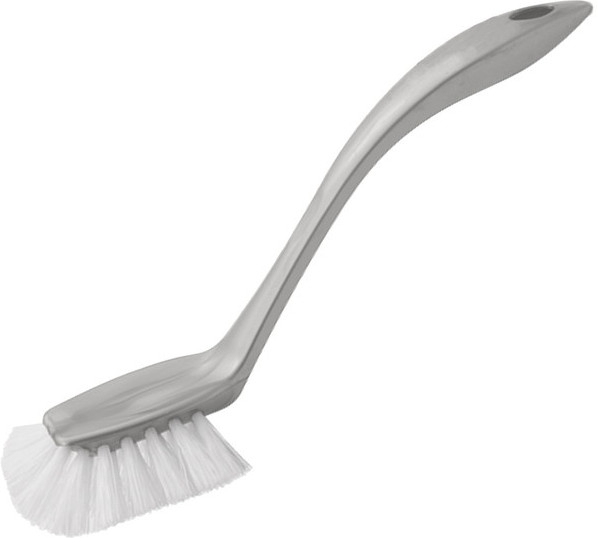 Щётка для мытья посуды имеет удобную эргономическую ручку с отверстием для размещения на крючке. Ворс щётки прочный и не деформируется при высоких температурах воды. На головке щётки расположен удобный скребок для снятия особо стойкого загрязнения.