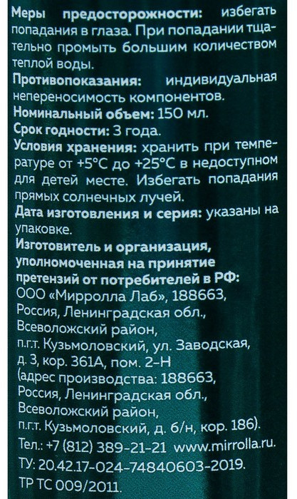 Mirrolla Кислота янтарная для волос-25% +29 мягкие волосы блеск легкое расчёсывание