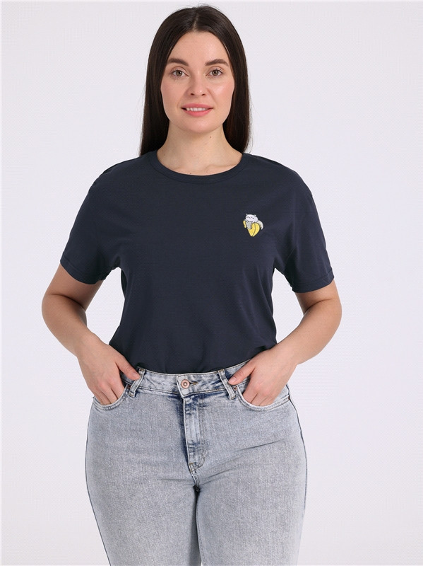 Футболка выполнена из легкого хлопкового полотна. Изделие свободного покроя с короткими рукавами и округлым вырезом горловины, украшено оригинальной вышивкой.