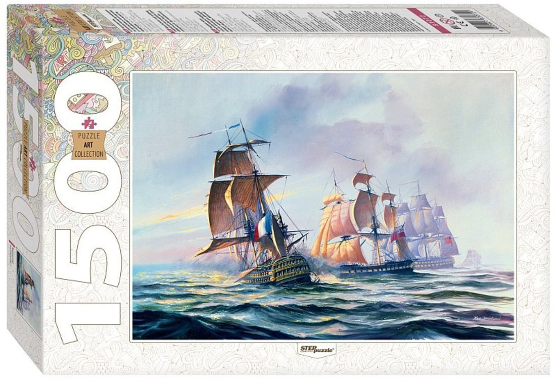 Пазл «Морской бой» состоит из 1500 деталей. С древнейших времен морские бои не уступали сухопутным столкновениям по напряженности и целям — уничтожение сил противника. Нередко сражения парусников переносилось художниками на холст, а отныне собрать увлекательное и опасное морское приключение могут и пазломаны.