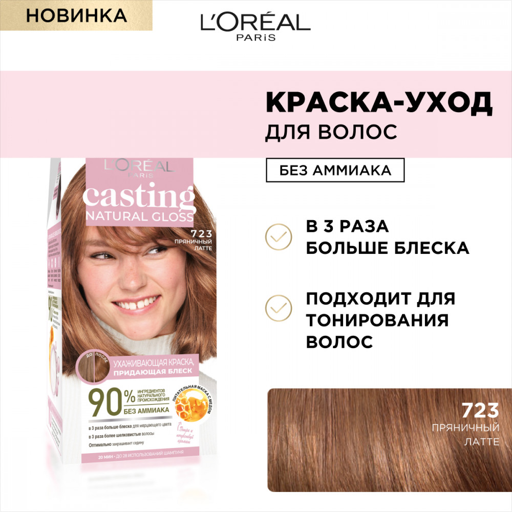 L'Oreal Paris Краска для волос без аммиака «Casting Natural Gloss», оттенок 723 Пряничный латте