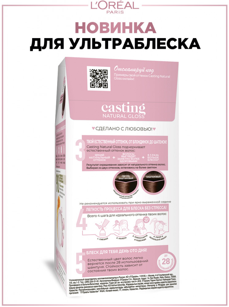 L'Oreal Paris Краска для волос без аммиака «Casting Natural Gloss», оттенок 423 Горячий шоколад