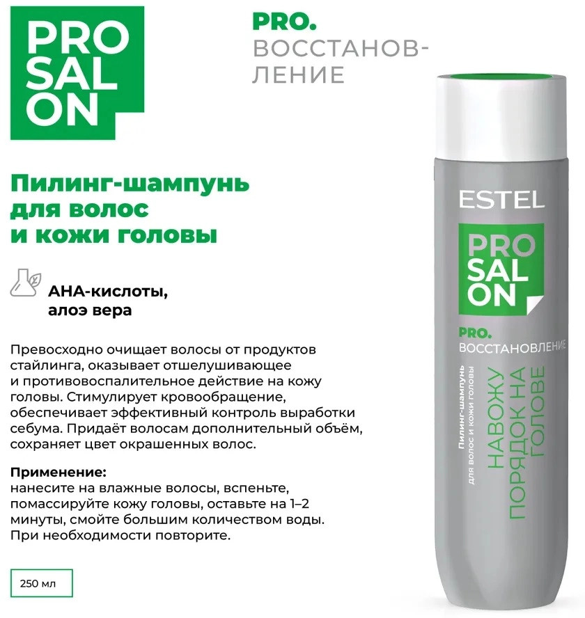 Серия: Pro.salon Pro.восстановление Превосходно очищает волосы от продуктов стайлинга, оказывает отшелушивающее и противовоспалительное действие на кожу головы. Стимулирует кровообращение, обеспечивает эффективный контроль выработки себума. Придаёт волосам дополнительный объём, сохраняет цвет окрашенных волос. |