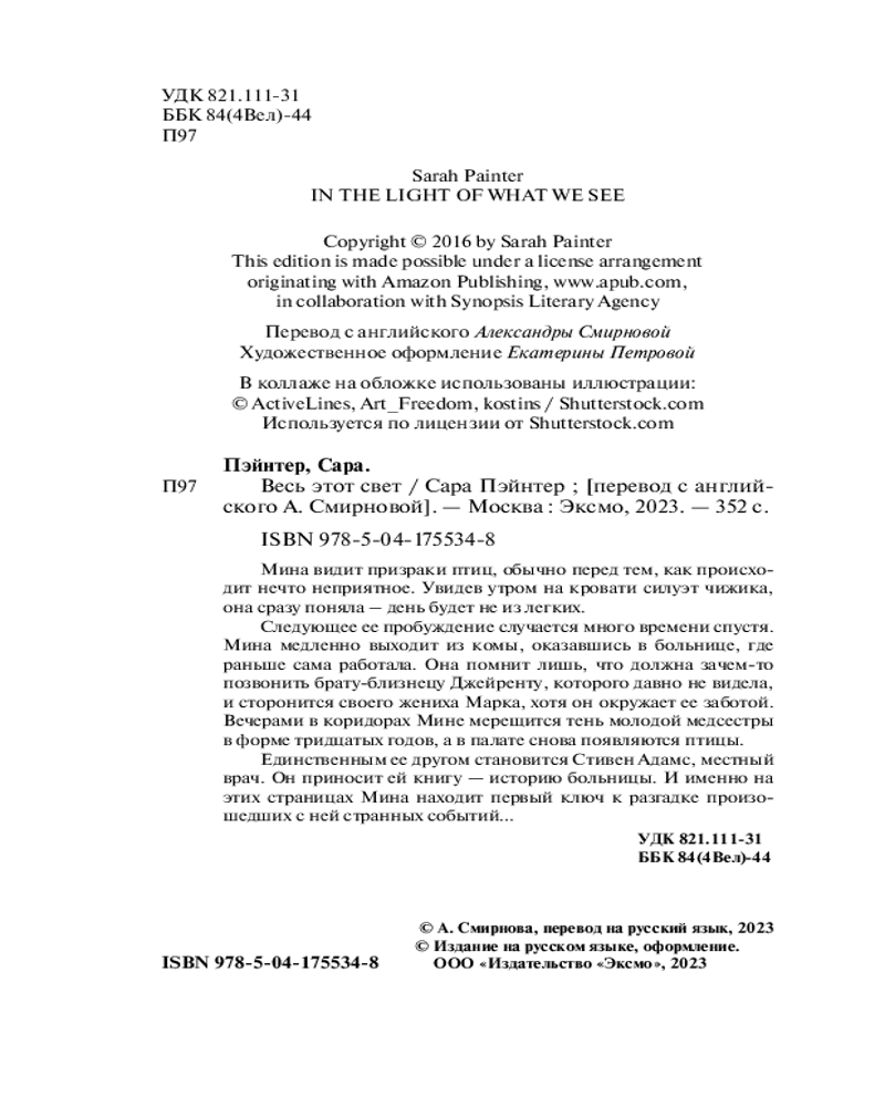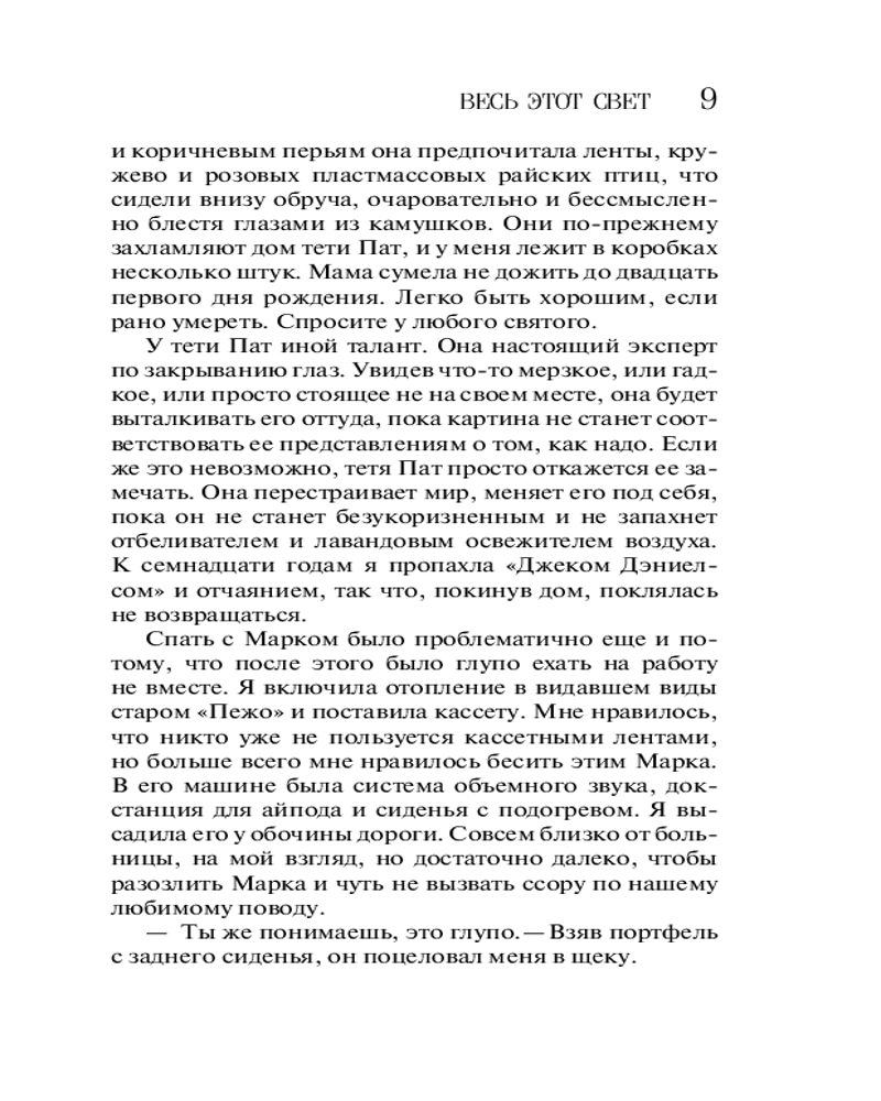 Весь этот светВ данный момент этот товар отсутствует в продаже. Возможно, у нас найдется аналогичный или похожий товар здесь. Серия: Весь этот свет. Романы Сары Пэйнтер Саре Пэйнтер удалось найти рецепт идеального романа — это истории о чувствах и о загадках нашего сознания, расцвеченные толикой мистики, романтики и постмодернистского детектива. Ее книгам тесно в границах одного жанра. Но благодаря этому книги Сары Пэйнтер не раз отмечены критиками «за свежий взгляд». |