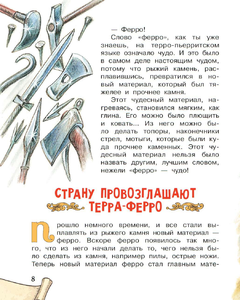 Сказка о стране Терра-ФерроВ данный момент этот товар отсутствует в продаже. Возможно, у нас найдется аналогичный или похожий товар здесь. Серия: Научные сказки Мудрая и поучительная сказка Евгения Пермяка рассказывает об удивительной стране Терра-Ферро, которой правили жестокие и жадные короли — Деревянный, Железный и Золотой. Они всё время ссорились и строили друг другу козни, из-за чего стали страдать жители страны. Ведьма Корро де Ржа, или Ржавчина, уничтожила все железные вещи, так что не осталось в стране ни самолётов, ни кораблей, ни даже железного плуга, чтобы вспахать поле. Лишь находчивость и смелость юноши, внука корзинщика, помогла одержать победу над колдуньей. |