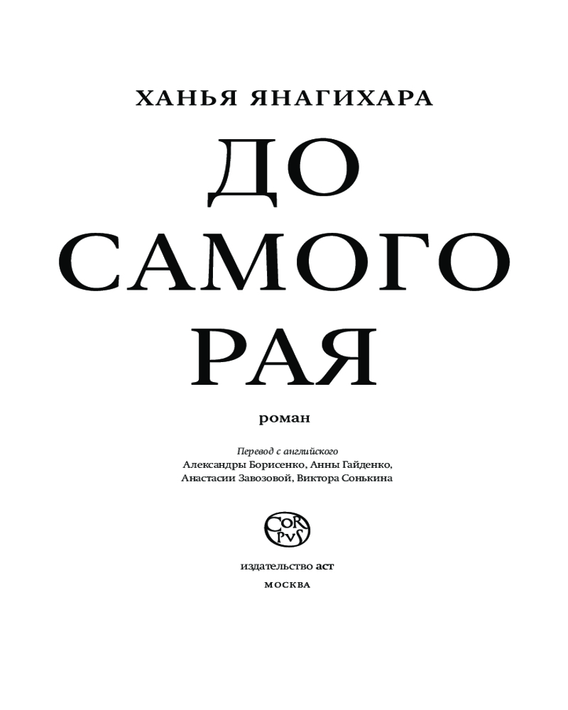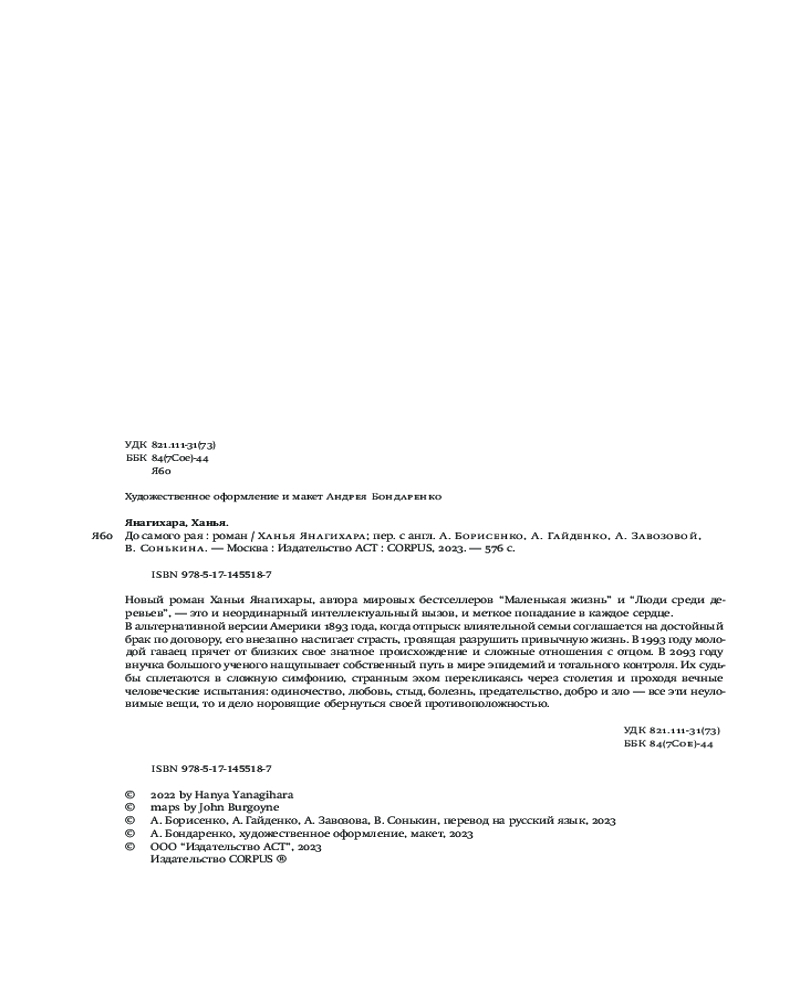 До самого раяВ данный момент этот товар отсутствует в продаже. Возможно, у нас найдется аналогичный или похожий товар здесь. Серия: Corpus Новый роман Ханьи Янагихары, автора мировых бестселлеров «Маленькая жизнь» и «Люди среди деревьев», — это и неординарный интеллектуальный вызов, и меткое попадание в каждое сердце. В альтернативной версии Америки 1893 года, когда отпрыск влиятельной семьи соглашается на достойный |