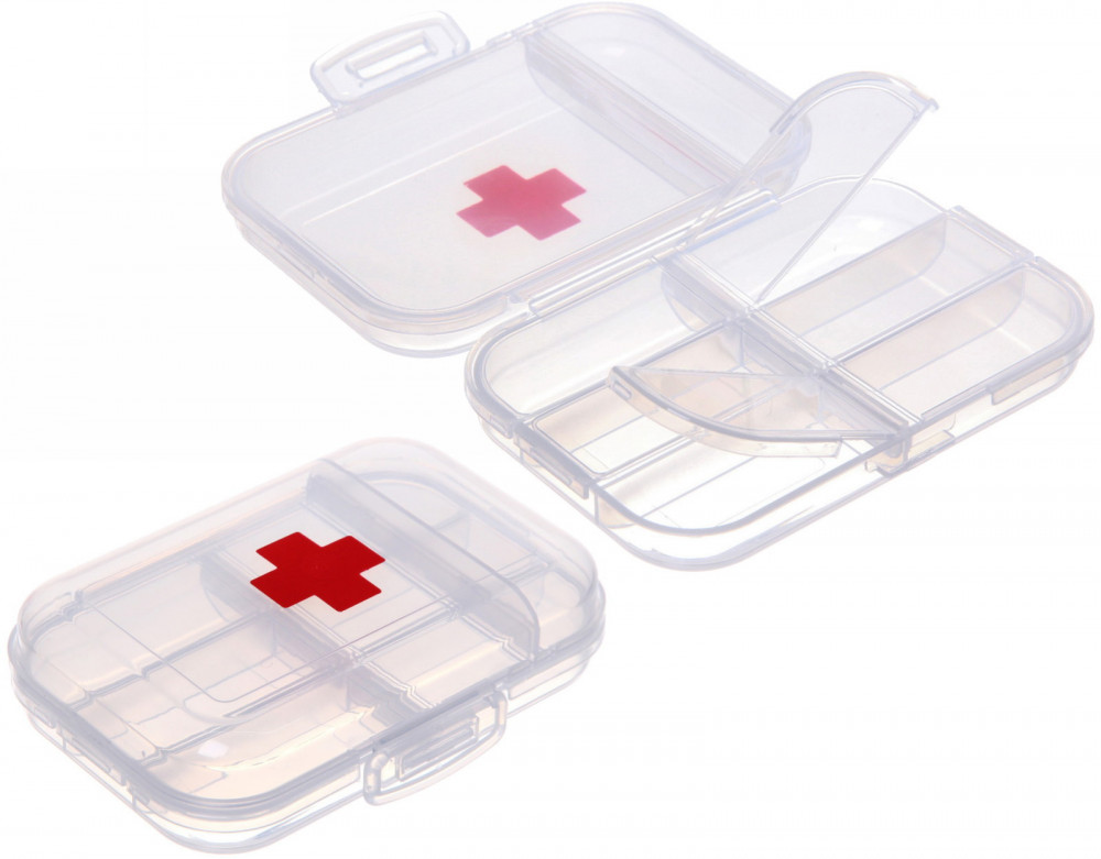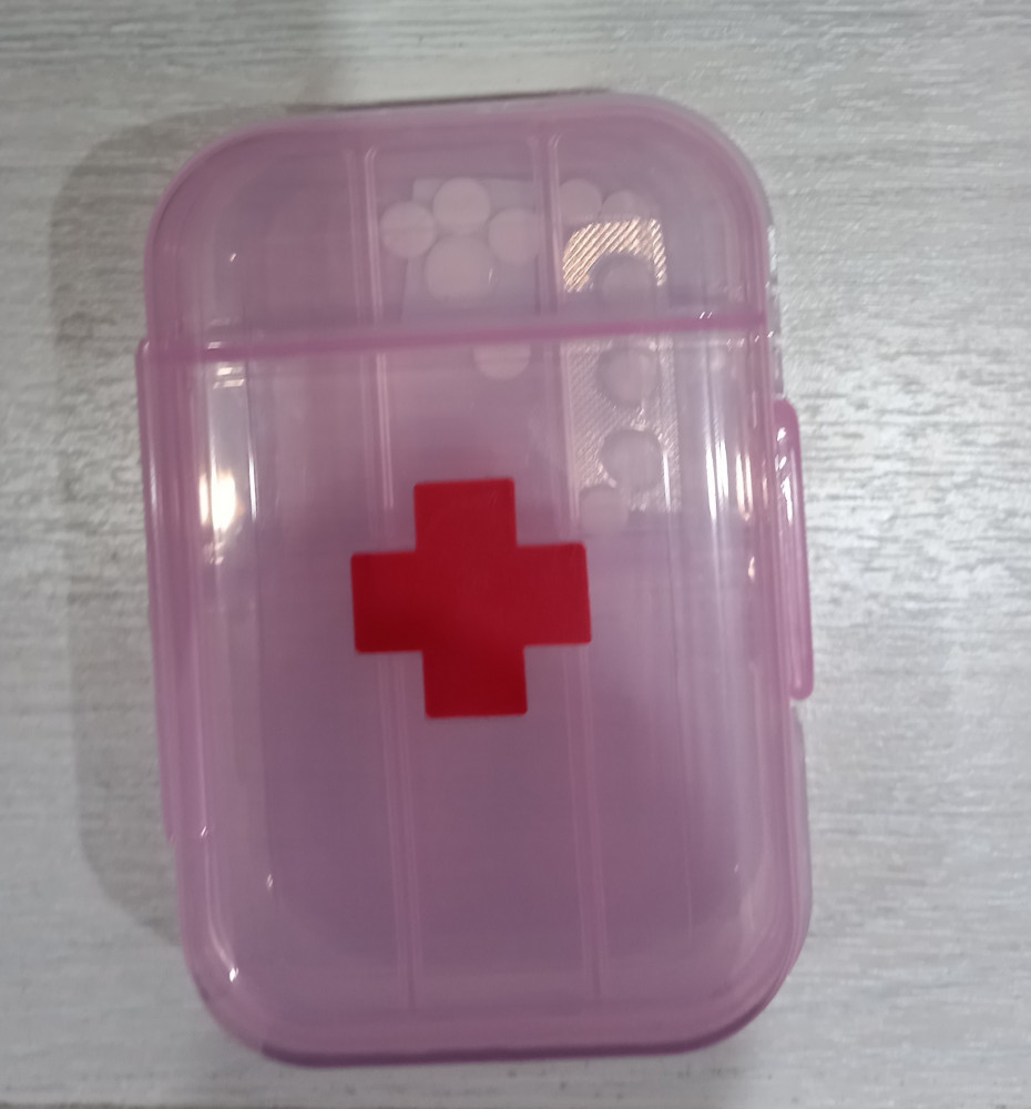 таблетница супер. размер подходящий , 8 ячеек, большие капсулы помещаются свободно,удобно носить с собой в сумочке и цена низкая.советую.