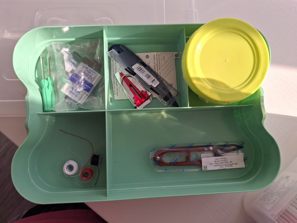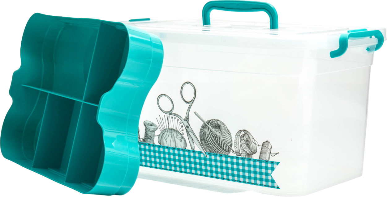 Омрачило то,что защёлки слабоваты,вылетают из пазов.Стараюсь очень аккуратно открывать и закрывать.А так все принадлежности к шитью находятся в контейнере , удобно и безопасно.