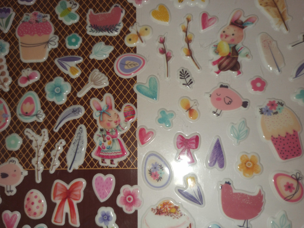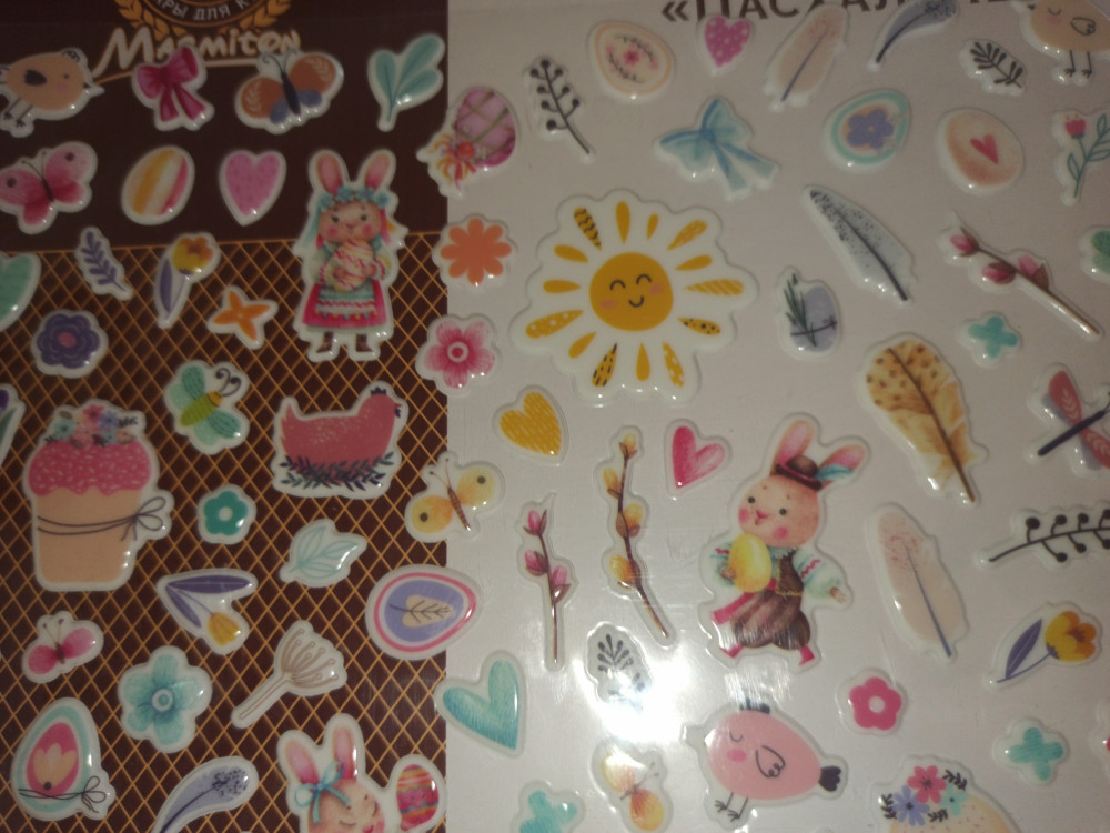 Наклейки красивые, размер больше, чем я думала. Правда, мы не будем их на яйца клеить, планируем украшать пасхальные открытки и поделки.