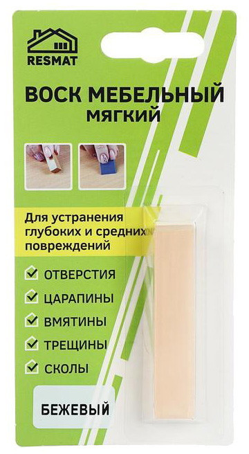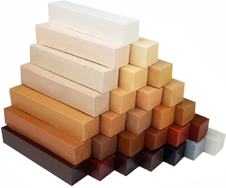 Предназначен для заделки глубоких и средних повреждений на деревянных, ламинированных и пластиковых поверхностях, не подверженных интенсивной эксплуатации. Для обеспечения влагостойкости и защиты поврежденного участка, рекомендуется поверх воска нанести лак фиксирующий 10 слоев с переменной сушкой 5 минут.