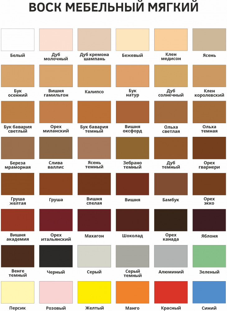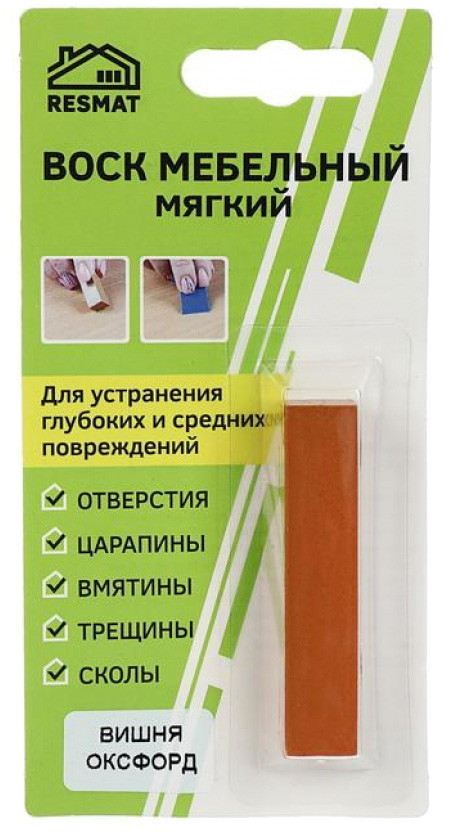 Предназначен для заделки глубоких и средних повреждений на деревянных, ламинированных и пластиковых поверхностях, не подверженных интенсивной эксплуатации. Для обеспечения влагостойкости и защиты поврежденного участка, рекомендуется поверх воска нанести лак фиксирующий 10 слоев с переменной сушкой 5 минут.