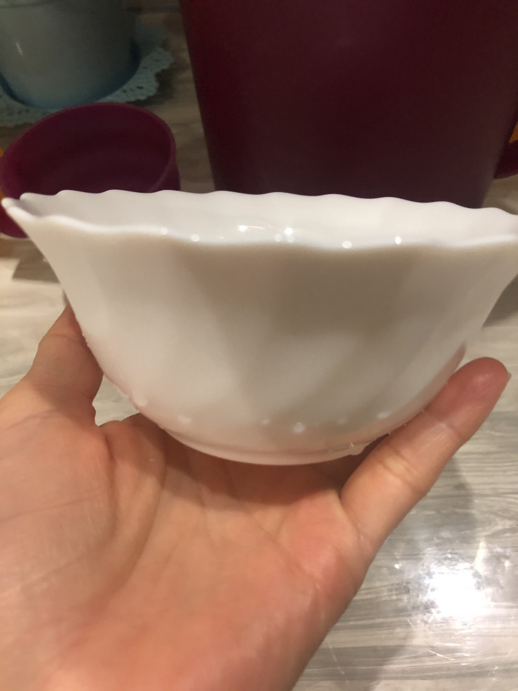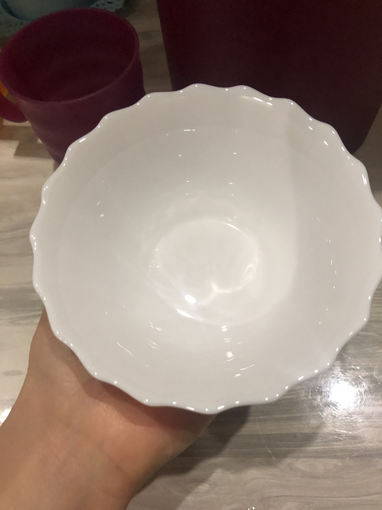 Качество отличное, цвет белый без посторонних вкраплений и оттенков. Меня подвел размер, вроде я мерила 12 см диаметр, но оказся совсем маленький размер, примерно как чашка для чая
