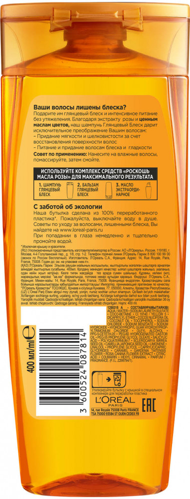 Elseve Шампунь для волос с экстрактом розы «Роскошь 6 масел» для глянцевого блескаВ данный момент этот товар отсутствует в продаже. Возможно, у нас найдется аналогичный или похожий товар здесь. Ваши волосы лишены блеска? Подарите им глянцевый блеск и интенсивное питание без утяжеления. Благодаря экстракту французской розы и ценным миромаслам цветов, шампунь Глянцевый блеск дарит исключительное преображение Вашим волосам придание мягкости и шелковистости за счет восстановления структуры волос, питание и придание волосам блеска и гладкости. После использования шампуня остается вуаль нежного и утонченного цветочного аромата. Попробуйте также питательную маску Роскошь 6 масел L’Oreal Paris Elseve. |