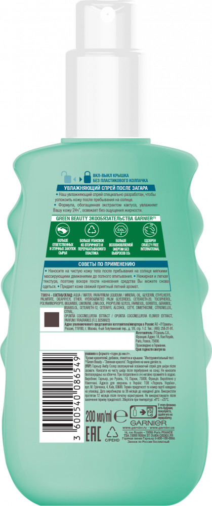 Garnier Освежающий спрей после загара «Ambre Solaire» с экстрактом кактуса+388 освежает увлажняет эффективна