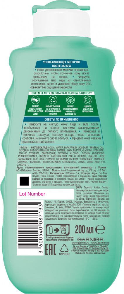 Garnier Тающее молочко после загара «Ambre Solaire» успокаивающее с алоэ вераВ данный момент этот товар отсутствует в продаже. Возможно, у нас найдется аналогичный или похожий товар здесь. Серия: Ambre Solaire Наше увлажняющее молочко специально разработано, чтобы успокоить кожу после пребывания на солнце. Формула, обогащённая алоэ вера из ответственных источников, питает и увлажняет вашу кожу 24 ч. Освежает без ощущения жирности. Придает коже свежий и приятный и летний аромат. |