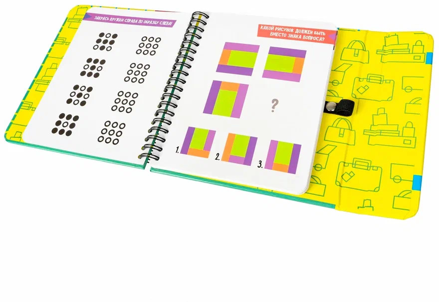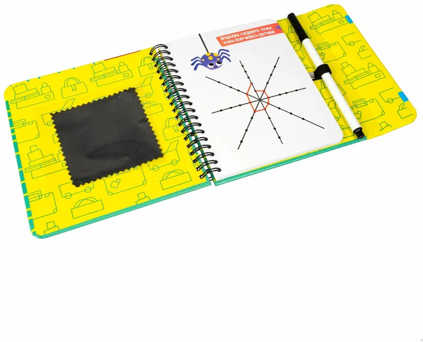Карточки многоразовые — пробуйте различные варианты, не боясь ошибиться! Стирающийся маркер и салфетка, которые входят в комплект, помогут легко исправить ошибки. Все надежно закреплено в компактной книжке на пружинке. Занимайтесь дома, в дороге, у бабушки. |