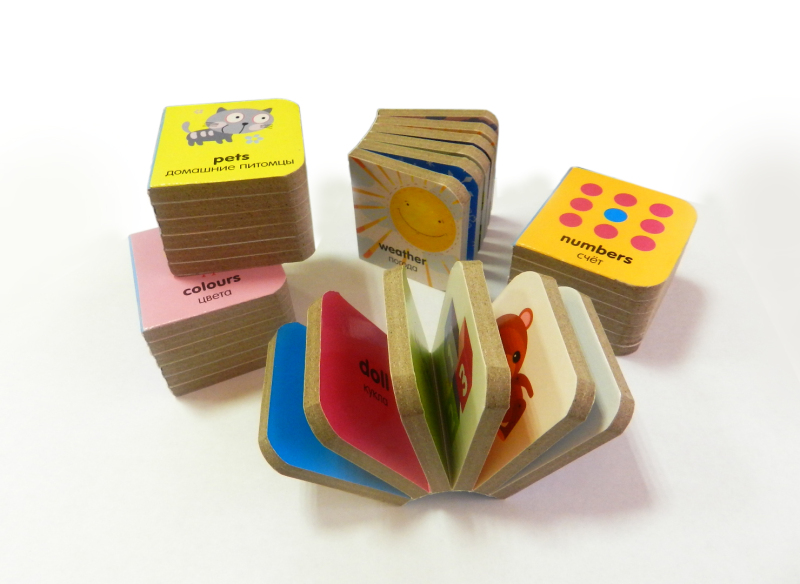 Очень хорошая идея - маленькие книжечки) мой сынок (3,5 года) очень любит (пока) играться с ними, чаще всего это у него самолетики, но и доставать их, и складывать их обратно ему не менее интересно). Когда у сына хорошее настроение, мы читаем их, я произношу на английском, а он повторяет! Но чаще он рассматривает их сам и название тоже придумывает сам))) Единственный минус - это переплет на этих книжечках слабоват, но я сразу подклеила скотчем, дабы без казусов.) Мы с сыном советуем, как наглядное пособие!