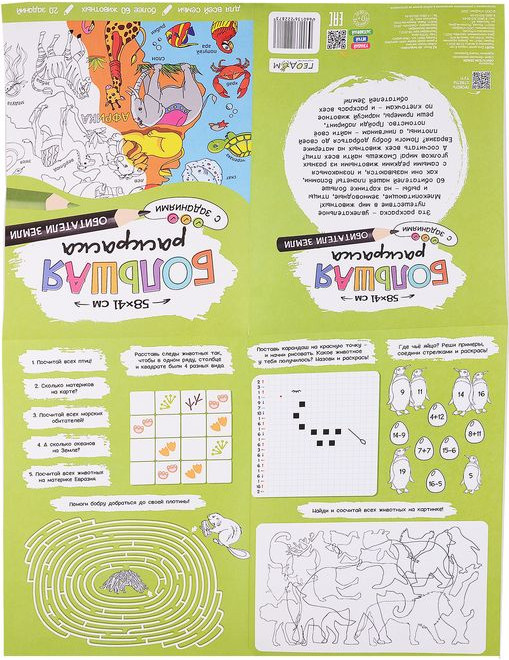 💳 Оплатить за товар можно при получении 🇰🇿 Есть бесплатная доставка по Казахстану от 1 дня 🎁 Копите бонусы с каждой покупки Серия: Большая раскраска с заданиями Большая раскраска с заданиями — это увлекательное путешествие в мир животных и занимательный досуг для всей семьи! Сосчитайте все материки на карте, найдите обитателей Евразии, пройдите лабиринт и разгадайте шифр. На картинке больше 60 животных! Выполняйте задания, находите важные детали и раскрашивайте обитателей Земли — вместе! Раскраска развивает мышление, мелкую моторику, творческие способности и помогает готовить руку к письму. |