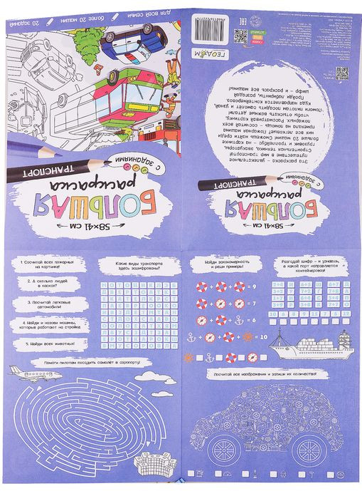 💳 Оплатить за товар можно при получении 🇰🇿 Есть бесплатная доставка по Казахстану от 1 дня 🎁 Копите бонусы с каждой покупки Серия: Большая раскраска с заданиями Большая раскраска с заданиями — это увлекательное путешествие в мир транспорта и занимательный досуг для всей семьи! Найдите всех людей в касках, сосчитайте легковые автомобили, пройдите лабиринт и разгадайте шифр. На картинке больше 20 машин! Выполняйте задания, находите важные детали и раскрашивайте машины — вместе! Раскраска развивает мышление, мелкую моторику, творческие способности и помогает готовить руку к письму. |