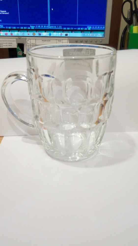 Хорошая кружка,тяжёленькая,стекло чистое- вся переливается!