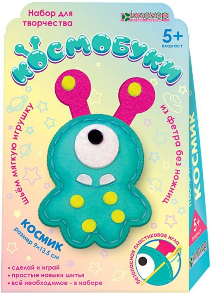 💳 Оплатить за товар можно при получении 🇰🇿 Есть бесплатная доставка по Казахстану от 1 дня 🎁 Копите бонусы с каждой покупки Серия: Космобуки С набором для творчества «Космобука Космик» ребёнок от 5 лет сошьёт простую мягкую игрушку из цветного фетра безопасной пластиковой иглой, освоит прямые стежки, познакомится с техникой набивания игрушки, декорирует игрушку самоклеящимися элементами из фетра. Набор поможет детям приобрести первые навыки шитья, развить мелкую моторику, сконцентрировать внимание, а простота работы подарит радость, положительные эмоции и повысит самооценку. |