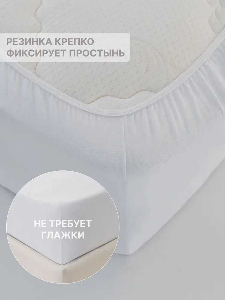 На ощупь приятная, на матрац села хорошо, заправила прямо под матрас. Хорошо тянется
