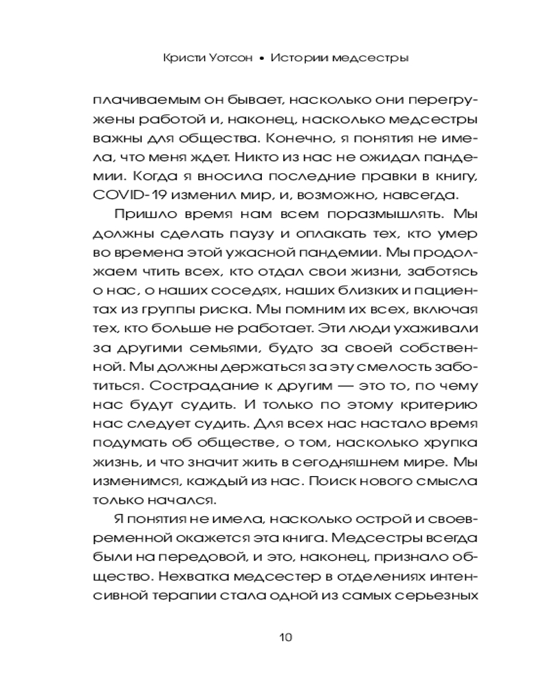 Кристи Уотсон приподнимает еще одну завесу — именно пациенты и их семьи проявляют исключительную силу в самые трудные времена. Мы все заслуживаем сострадания, и автор показывает нам, как, разделяя страдания друг друга, мы можем обрести смелость. Смелость заботиться.