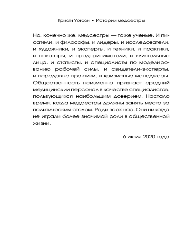 Кристи Уотсон — британский писатель и профессор медицинских гуманитарных наук, проработавшая медсестрой 20 лет. Ее книга «Язык милосердия», опубликованная в 2018 году, стала бестселлером The Sunday Times и Amazon и книгой года по версии Evening Standard, Guardian, i, New Statesman, The Sunday Times и The Times. Была переведена на 23 языка и адаптирована для театра. |