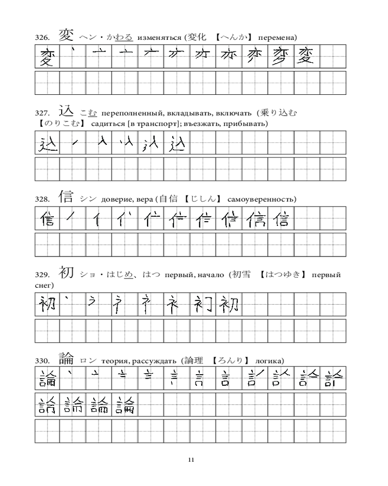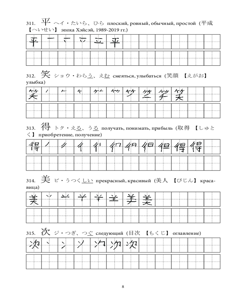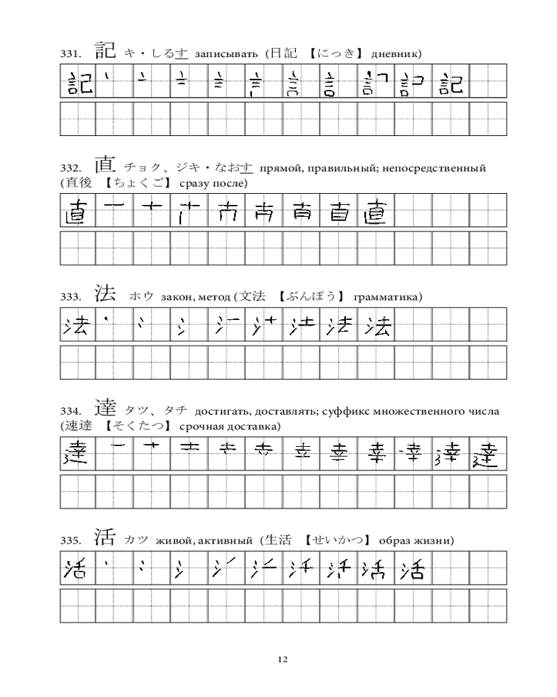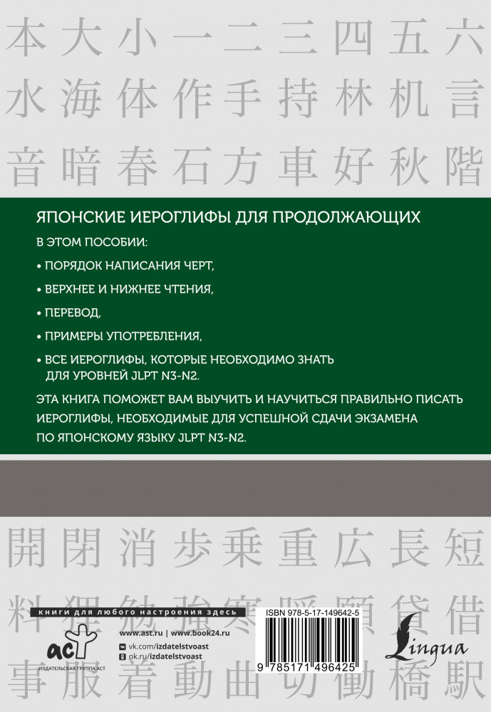 Японские иероглифы. Рабочая тетрадь для продолжающих. Уровни JLPT N3-N2+101