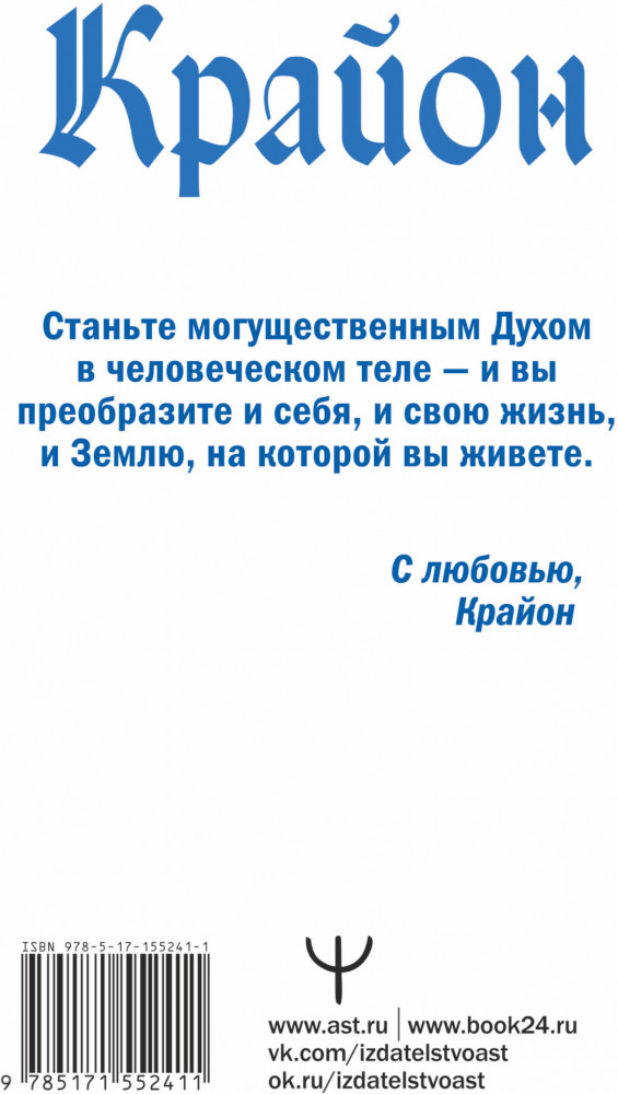 Ваше сознание — это сила, меняющая мир. Пришло время начать это делать! Менять мир в любви и свете Бога, потому что именно для этого вы пришли на Землю. И если вы до сих пор считали, что живете на черной полосе вашей судьбы, — самое время поменять ее на белую. Более того — послания Крайона помогут вам превратить всю вашу жизнь в сплошную белую полосу. |