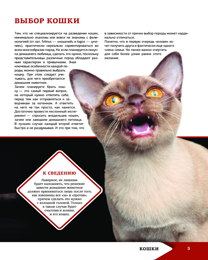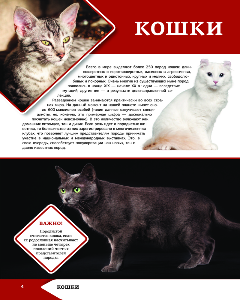 И конечно же, приведены основные породы кошек и собак, описаны история их происхождения и характер,