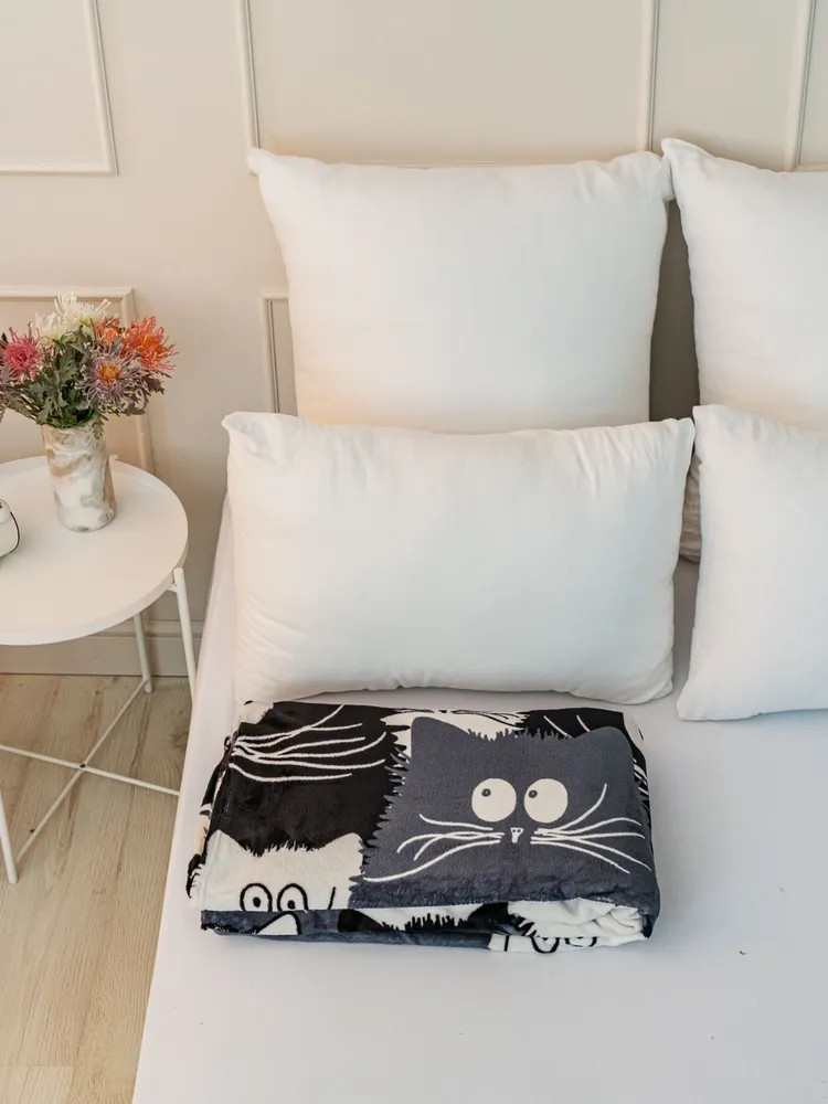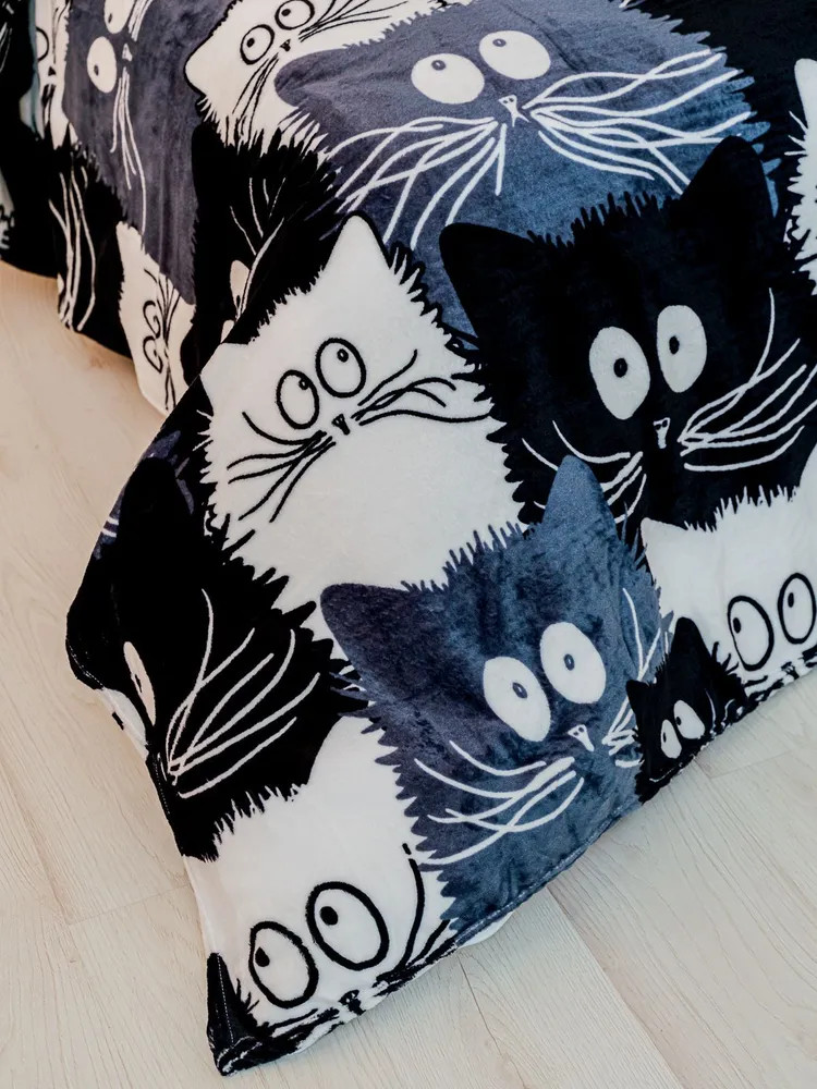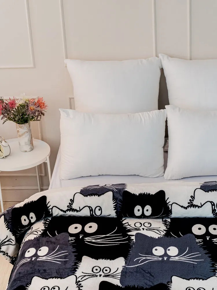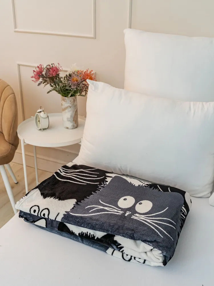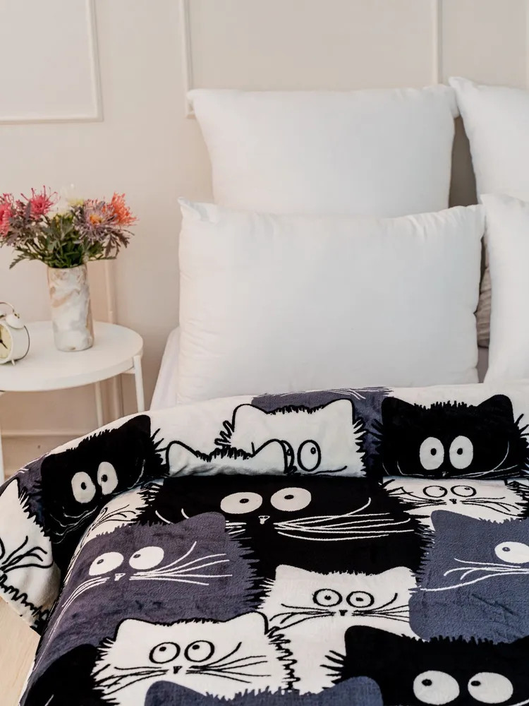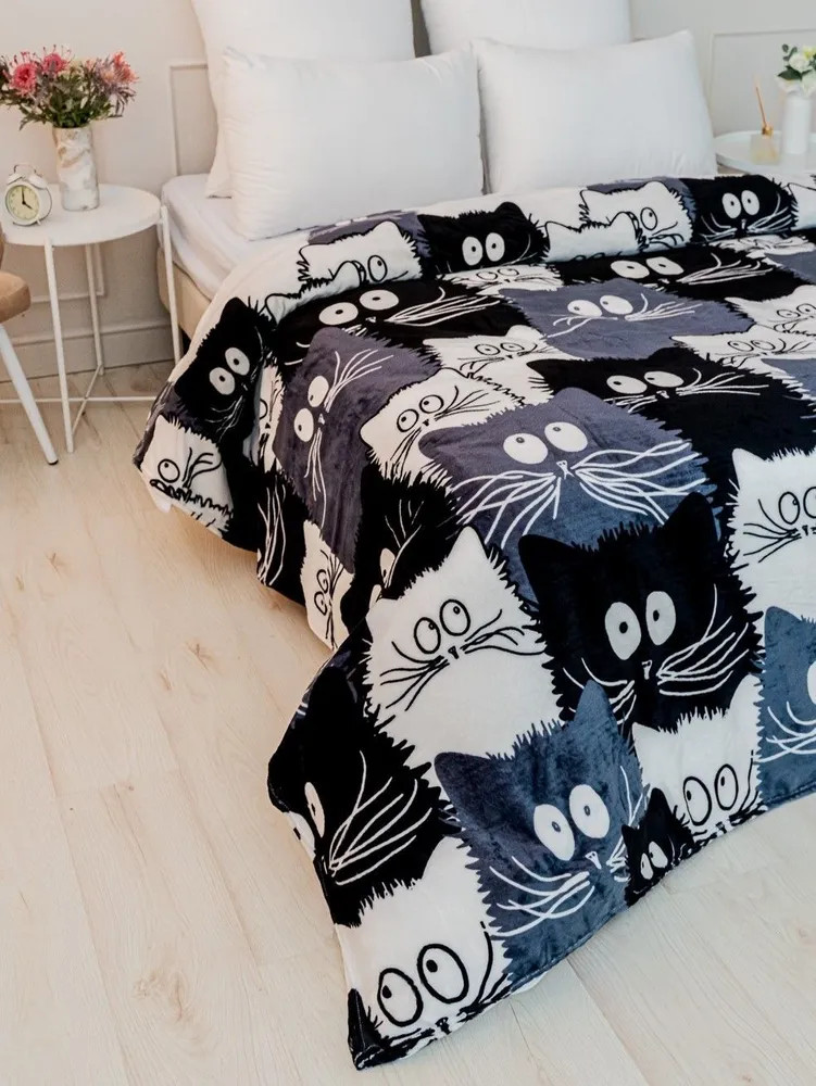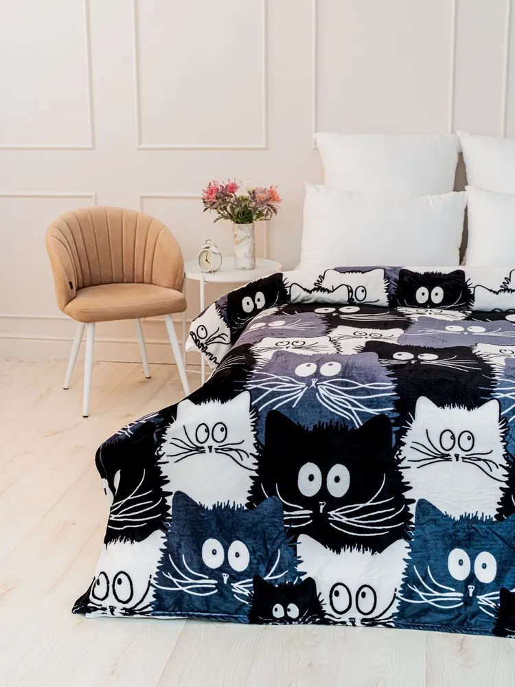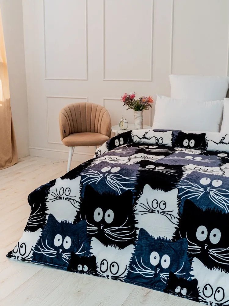 плед хороший, но расцветку прислали серо-чёрную...с синими котами он смотрится наряднее и веселее...