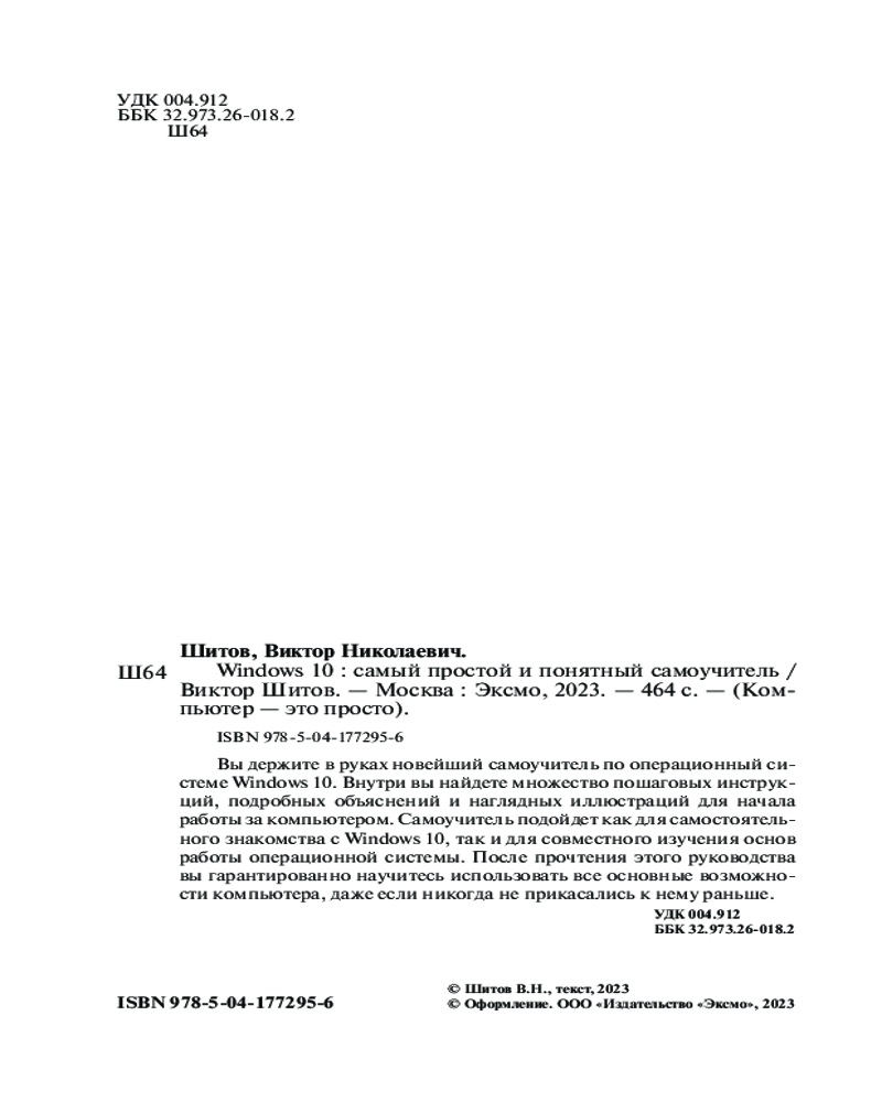 В данный момент этот товар отсутствует в продаже. Возможно, у нас найдется аналогичный или похожий товар здесь. Серия: Компьютер - это просто Новейший самоучитель по работе в операционной системе Windows 10. Научиться пользоваться компьютером под силу каждому, кто готов вооружиться этим руководством. Внутри вас ждут пошаговые инструкции настройки операционной системы, правила работы с Windows 10, множество наглядных иллюстраций и примеров. И все это изложено простым и доступным языком, который будет понятен даже тем, кто никогда не работал за компьютером самостоятельно! |
