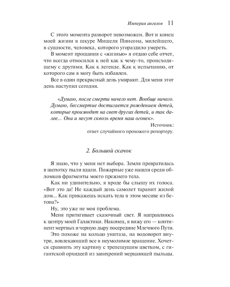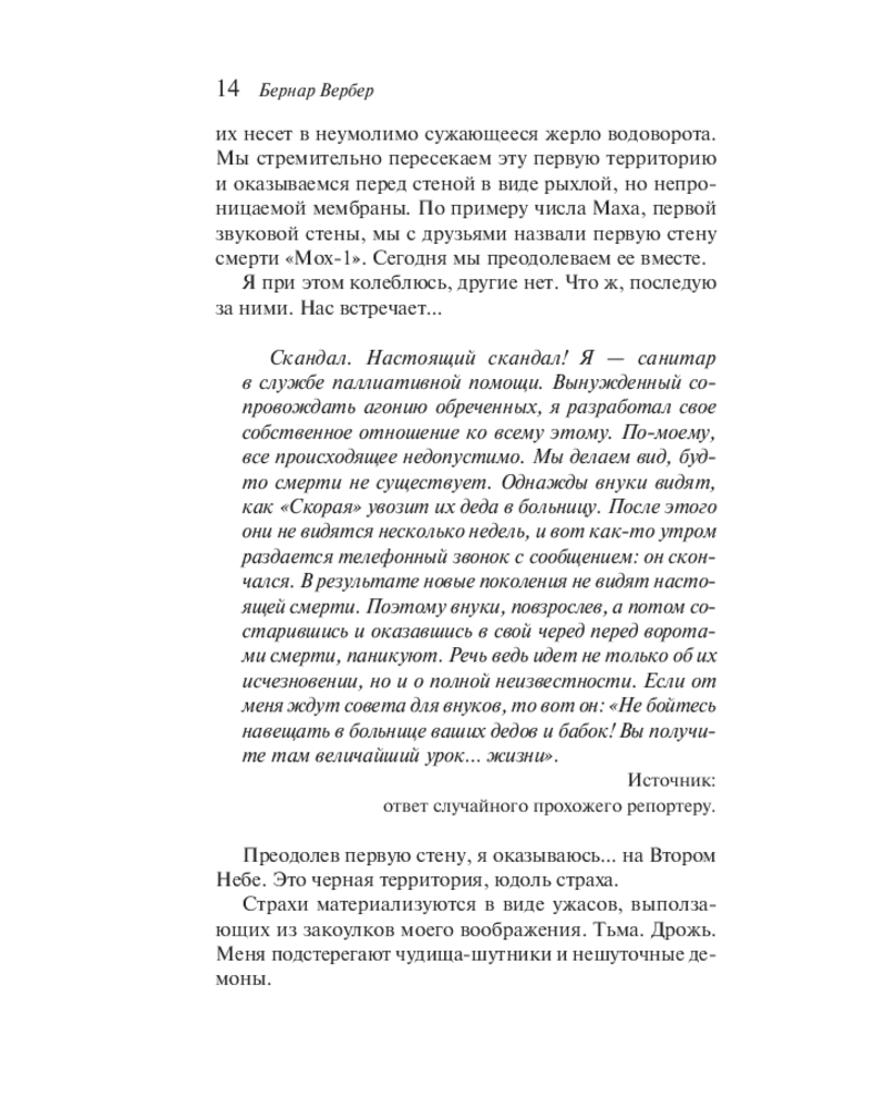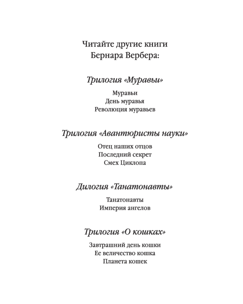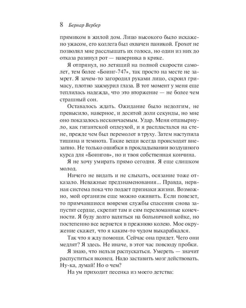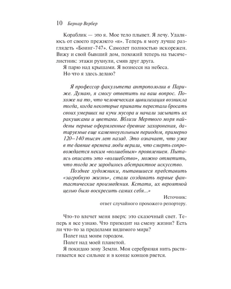 Обожаю эту книгу🩷 Все книги Бернар Вербера цепляют своей идеей о загробном мире , о жизни после смерти. Это книга рассказывает историю парня, который погибает попав в аварию, но на этом все история только начинается)