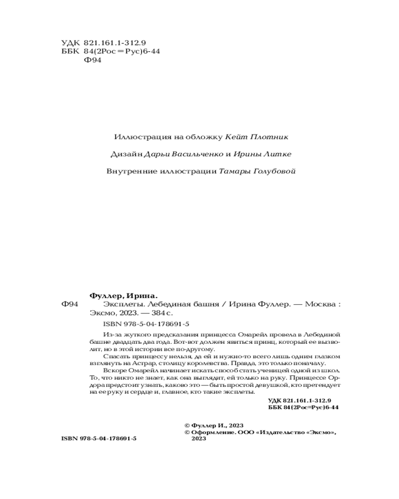 💳 Оплатить за товар можно при получении 🇰🇿 Есть бесплатная доставка по Казахстану от 1 дня 🎁 Копите бонусы с каждой покупки Серия: Young Adult. Книжный бунт. Новые сказки (покет большого формата) Из-за жуткого предсказания принцесса Омарейл провела в Лебединой башне двадцать два года. Вот-вот должен явиться принц, который ее вызволит, но в этой истории все по-другому. Спасать принцессу нельзя, да ей и нужно-то всего лишь одним глазком взглянуть на Астрар, столицу королевства. Правда, это только поначалу. Вскоре Омарейл начинает искать способ стать ученицей одной из школ. То, что никто не знает, как она выглядит, ей только на руку. Принцессе Ордора предстоит узнать, каково это — быть простой девушкой, кто претендует на ее руку и сердце и, главное, кто такие эксплеты. |