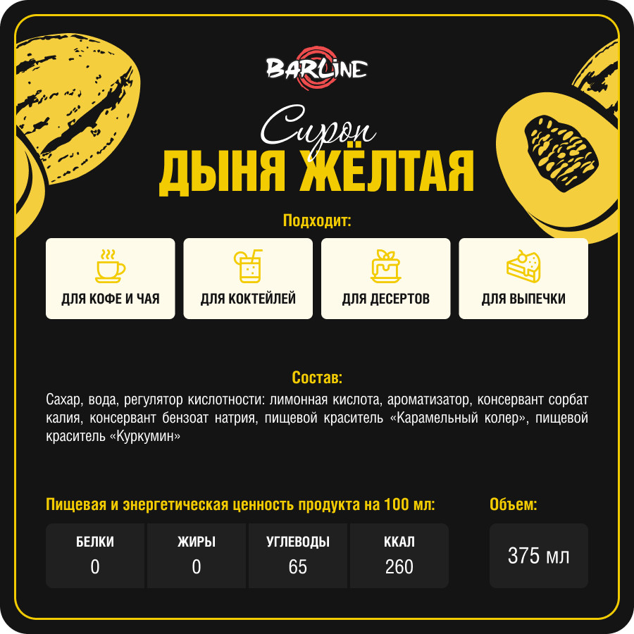 Barline Сироп со вкусом жёлтой дыни «Yellow melon»