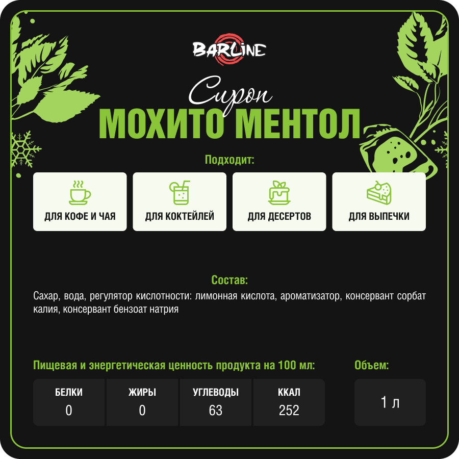 Barline Сироп со вкусом мохито «Mojito Mint»