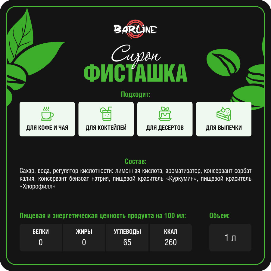 Barline Сироп со вкусом фисташки «Pistachio»