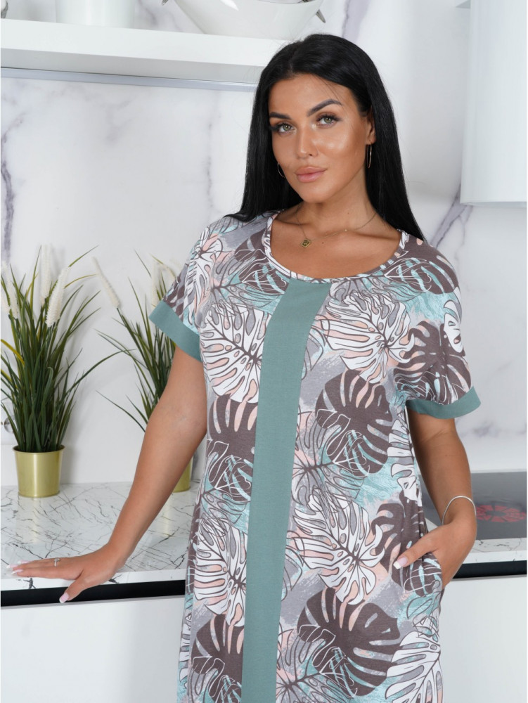 Платье шикарное, для дома Хлопок, свободное, расцветка насыщенная, слегка большемерит